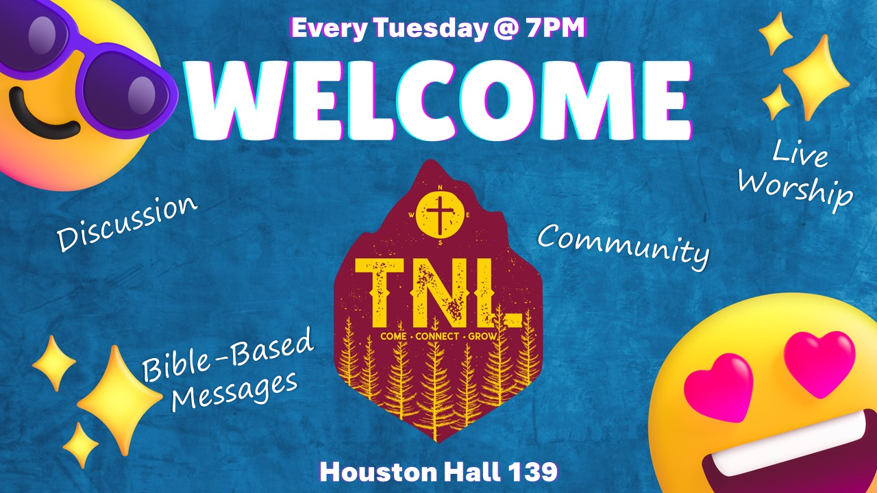 If you are new to TNL, we would love to meet you! If you are a returning student, we have a great semester planned! Check out our calendar on the events page.
